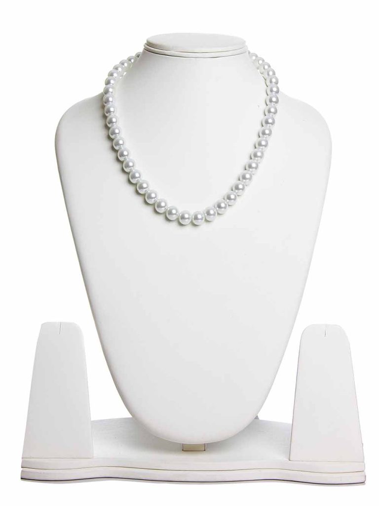 6.5 Mm Beads White See Shell Pearl Crytal Semi Precious Stone Necklace