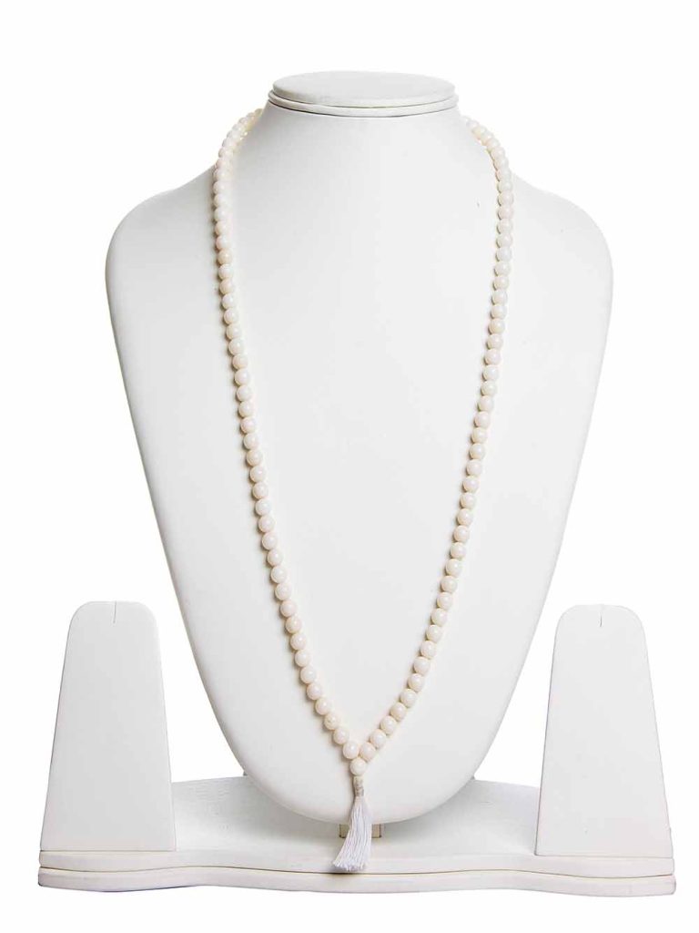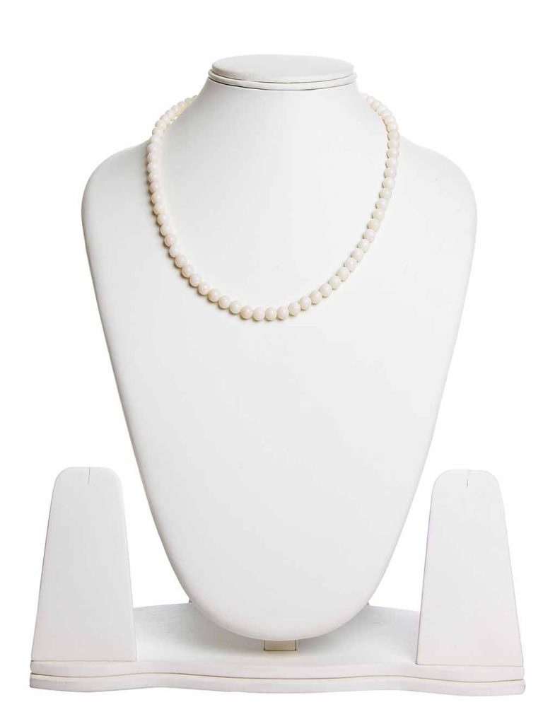 Natural 6.5 Mm Beads White Coral Crytal Semi Precious Stone Necklace