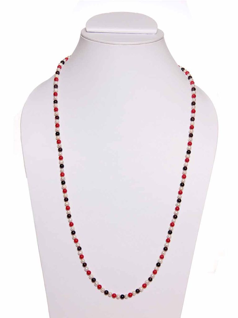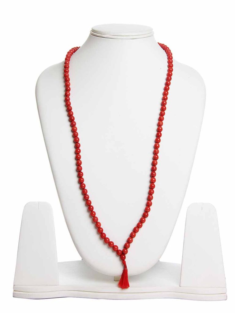 Genuine Red Coral Garnet Pearl Round Bead Semi Precious Mala Necklace