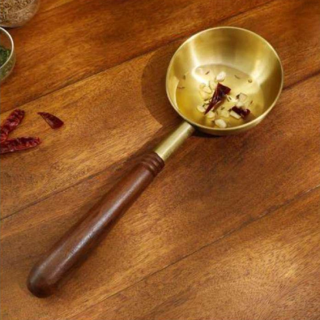 09 Dec Brass tadka pan with wooden handle Posted by Siddharth Basu December 10, 2025 0 Material: Brass Dimensions: Pan 15 cm x 10 cm x 6.25 cm (LxWxH) Handle 2.5 cm x 2.5 cm x 15 cm (LxWxH) Continue reading