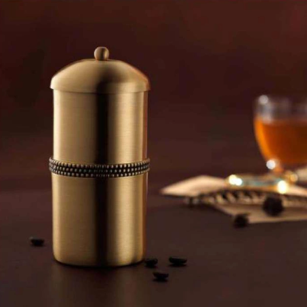 09 Dec Brass coffee filter gold Posted by Siddharth Basu December 10, 2025 0 Material: Brass Dimensions: 6.5 cm x 6.5 cm x 16 cm (LxWxH) Continue reading