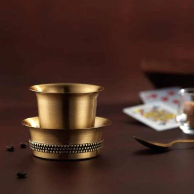 10 Dec Brass coffee set gold Posted by Siddharth Basu December 10, 2025 0 Material: Brass Dimensions: Tumbler 10 cm x 10 cm x 3.75 cm (LxWxH) Dabra 8.25 cm x 8.25 cm x 7.5 (LxWxH) Continue reading
