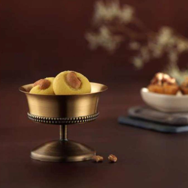 10 Dec Brass dessert bowl with spoon Posted by Siddharth Basu December 10, 2025 0 Material: Brass Dimensions: Desert Bowl 9 cm x 9 cm x 5.5 cm (LxWxH)Spoon - 12.5 cm (L) Continue reading