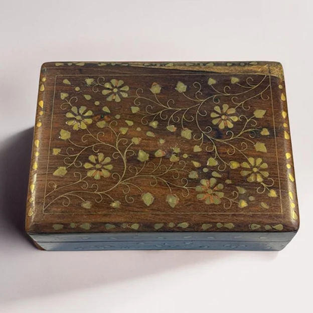 10 Dec Brass Inlay Keepsake Box Posted by Siddharth Basu December 11, 2025 0 Color: Brown | Dimension: 18x13x6 cm | Material: Sheesham Wood Continue reading