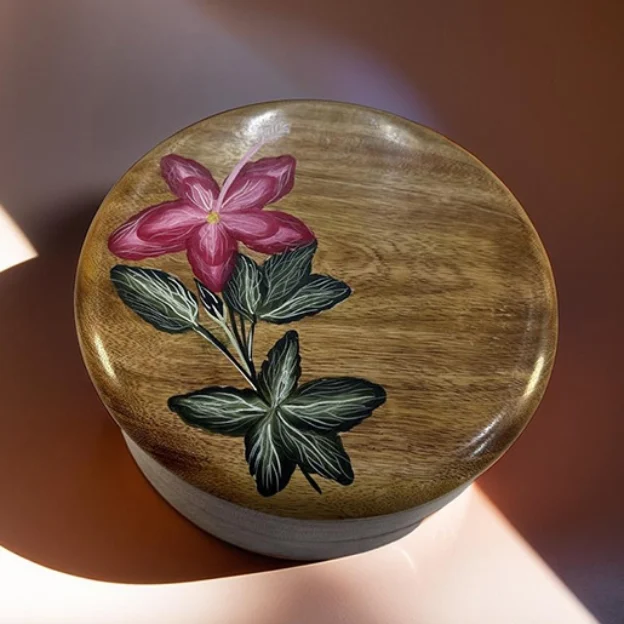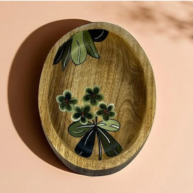 10 Dec Mini Handpainted Art Platter Posted by Siddharth Basu December 11, 2025 0 Color: Brown & Green | Dimension: 16x12x2.5 cm | Material: Mango Wood Continue reading