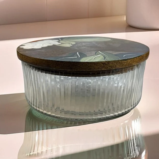 10 Dec Fluted Glass Roti Box Posted by Siddharth Basu December 11, 2025 0 Color: Brown | Dimension: 20x20x9.5 cm | Material: Glass & Wood Continue reading