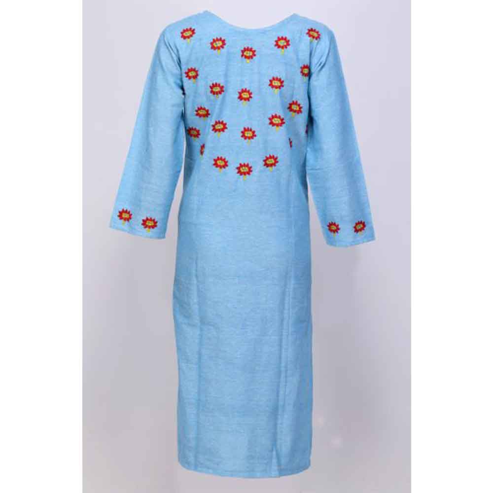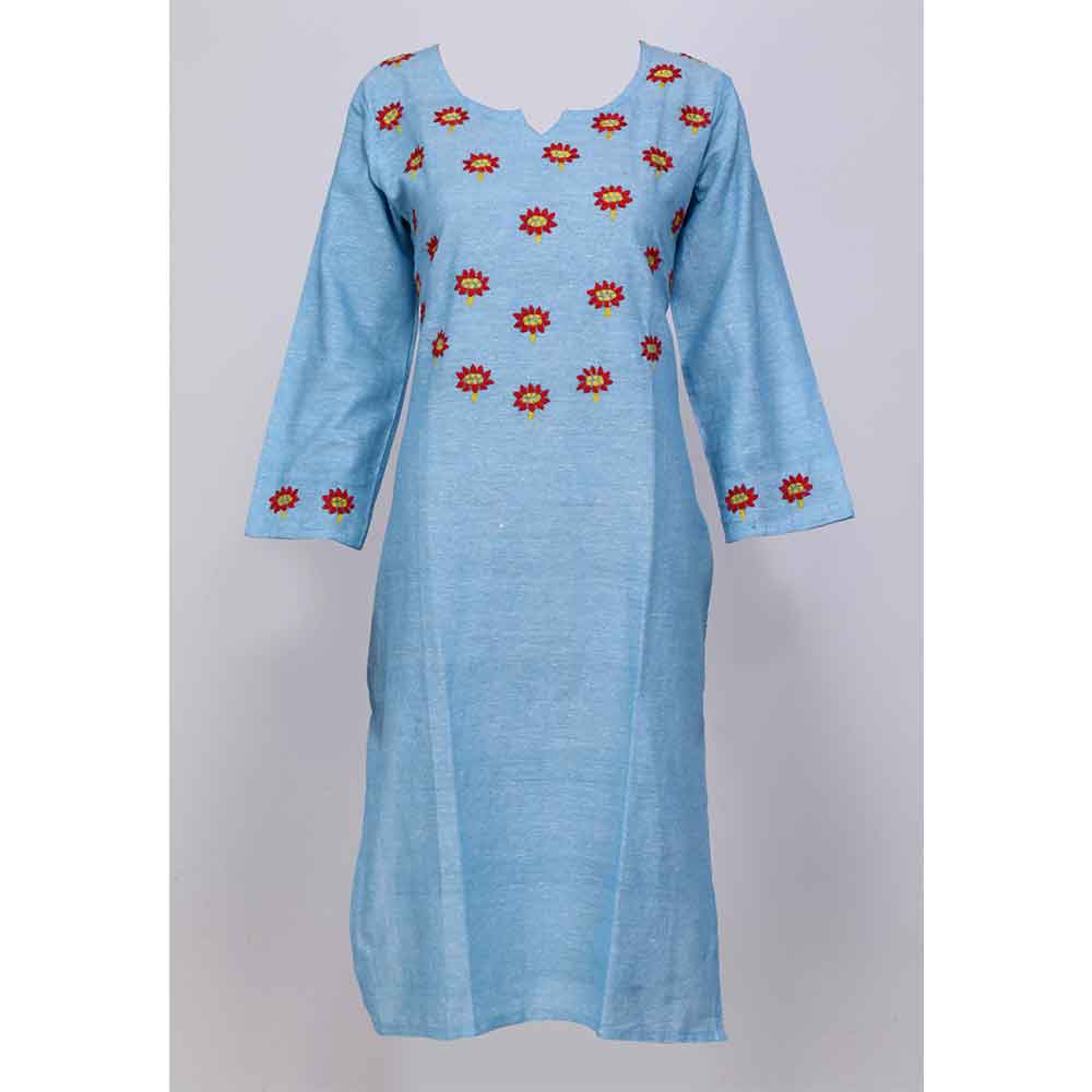 Long Sleeve Blue Kurta With Multicoloured Kantha Embroidery