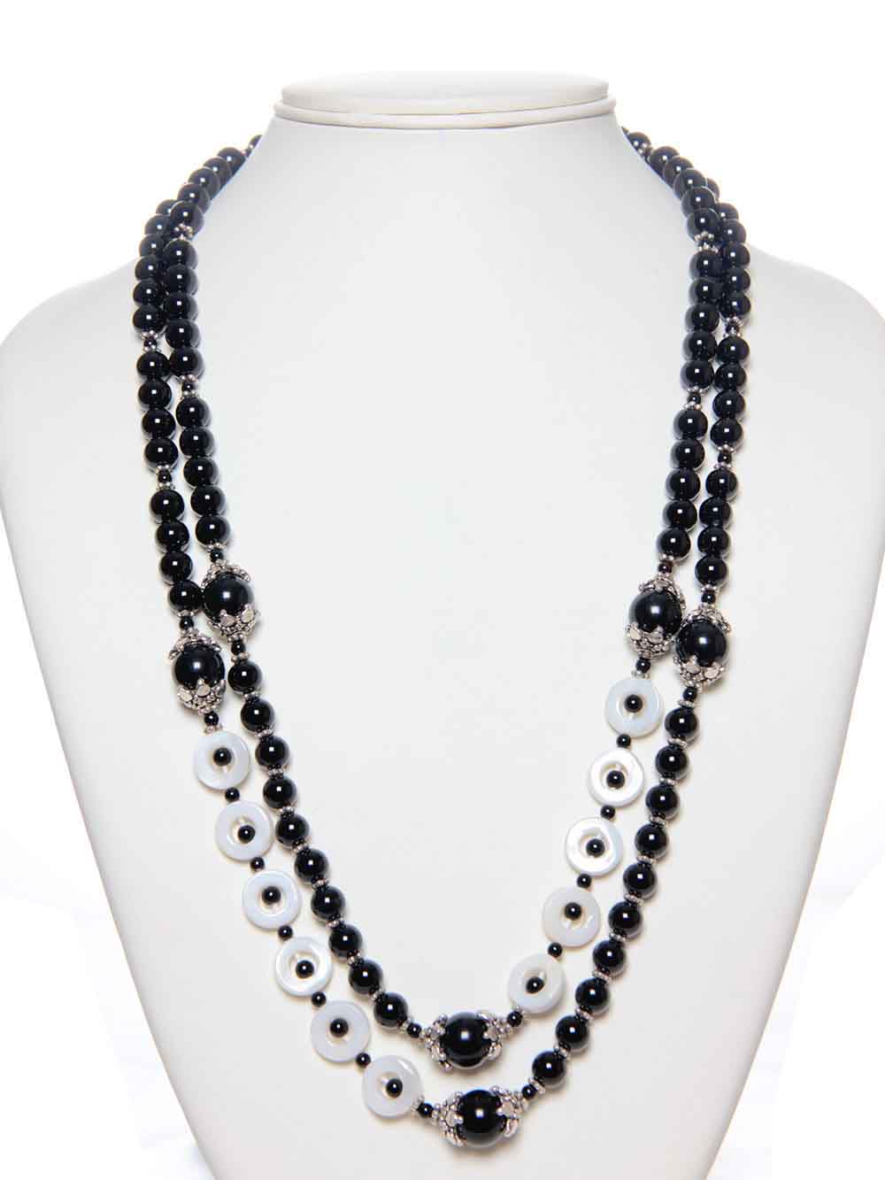 Beautiful & Genuine Onyx And Mother Of Pearl Necklace. Good Quality Semi Precious Gemstone.
