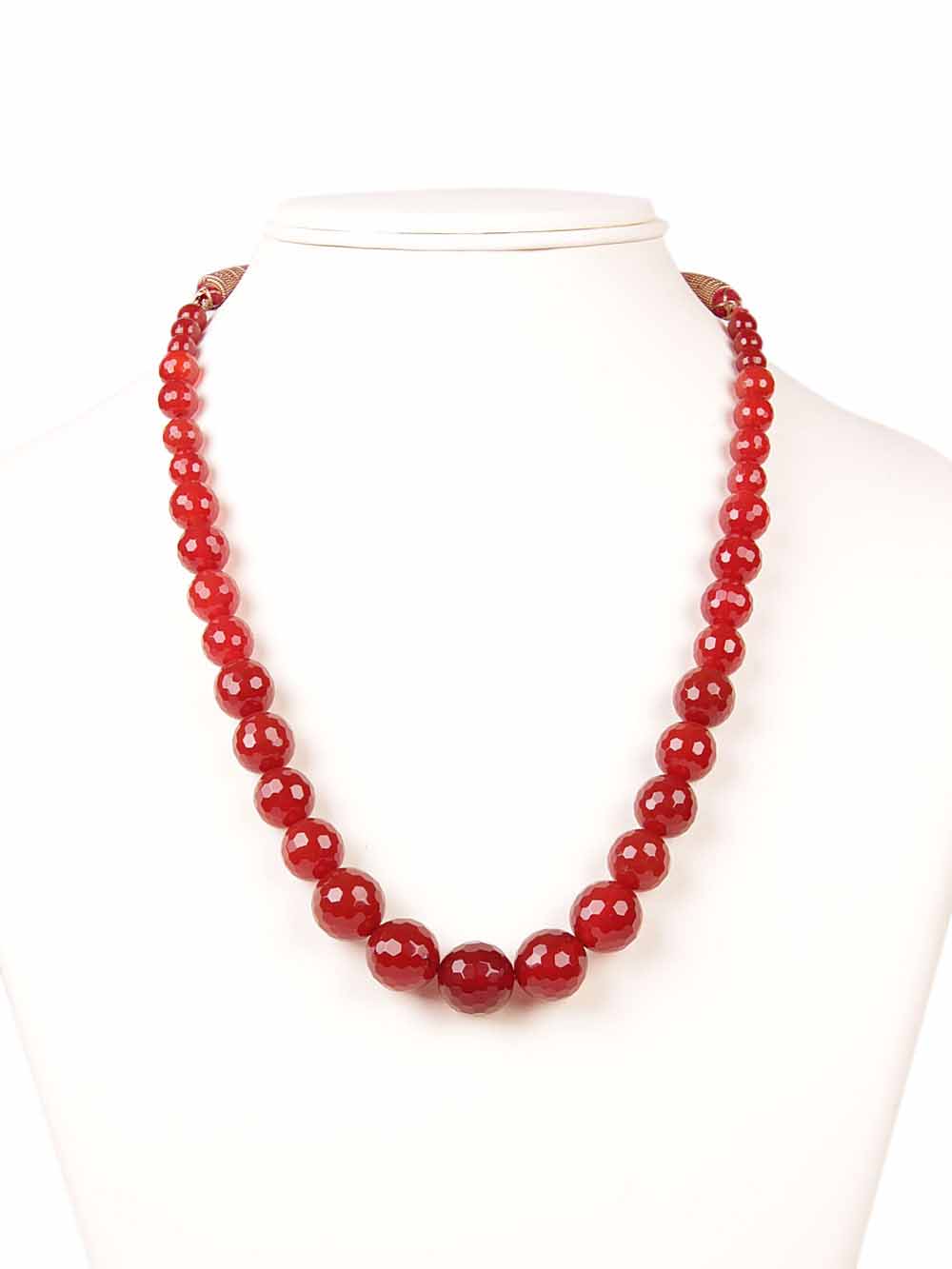 Handcrafted Fine Beautiful Red Onyx Crystal Semi Precious Gemstone Necklace is stunning with the any dress. Onyx Gemstone looks unique in style. It complements your outfits. Light weight Neclklace suited for any dress and age. Neckpiece made using small as well as big semi-precious stones of a single shade. Size of Bead: 6mm- 14mm, Length: Adjustable surafa