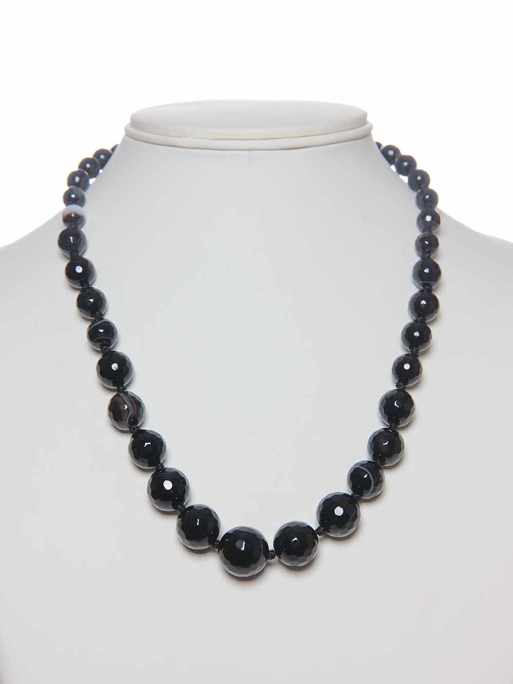 Beautiful & Genuine Onyx necklace. Good Quality Semi Precious Gemstone. It is a joyful stone that feels very secure in its essence and transmits the same warmth, protection and inner security to its surroundings. Handcrafted Fine Onyx Crystal Semi Precious Gemstone Necklace is stunning with the any dress. Onyx Gemstone looks unique in style. It complements your outfits. Light weight Necklace suited for any dress and age. Faceted round bead in knotted graduation Necklace. Size of Bead: 6mm- 16mm, Length: Approx 18″. Weight: 55 Grams DISCLAIMER: Since stone is a natural and unique product, it will vary in color, tone, granularity, pattern etc must be accepted. These differences and variations in stone should be considered as the beauty of natural stone instead of flaws. Customer acknowledges that natural stones vary in color, pattern, and texture. The actual product delivered may slightly differ from the sample or picture(s) shown.