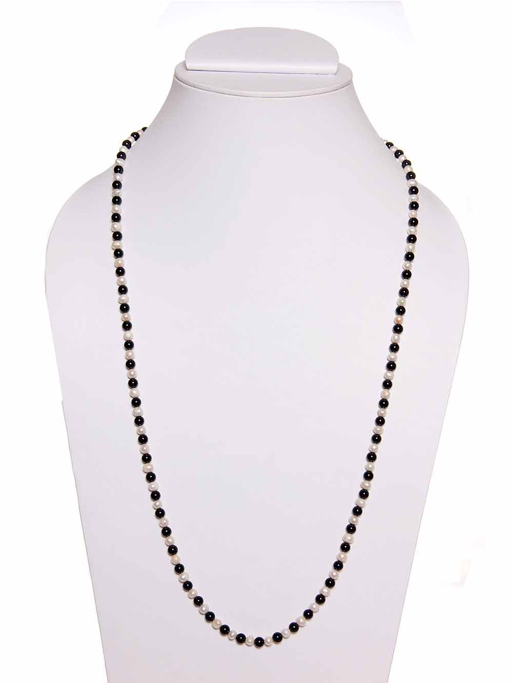 When you are in love with black and love to flaunt your black apparels with the perfectly matched accessory, celebrate the pleasures of darkness with this inordinate piece of necklace from the home of the Haat. Its black onyx and gracefully white pearl contrasts multiplies its pleasures, thus making it a must have in every wardrobe. Length: Approx 36″ Black onyx & pearl Mala