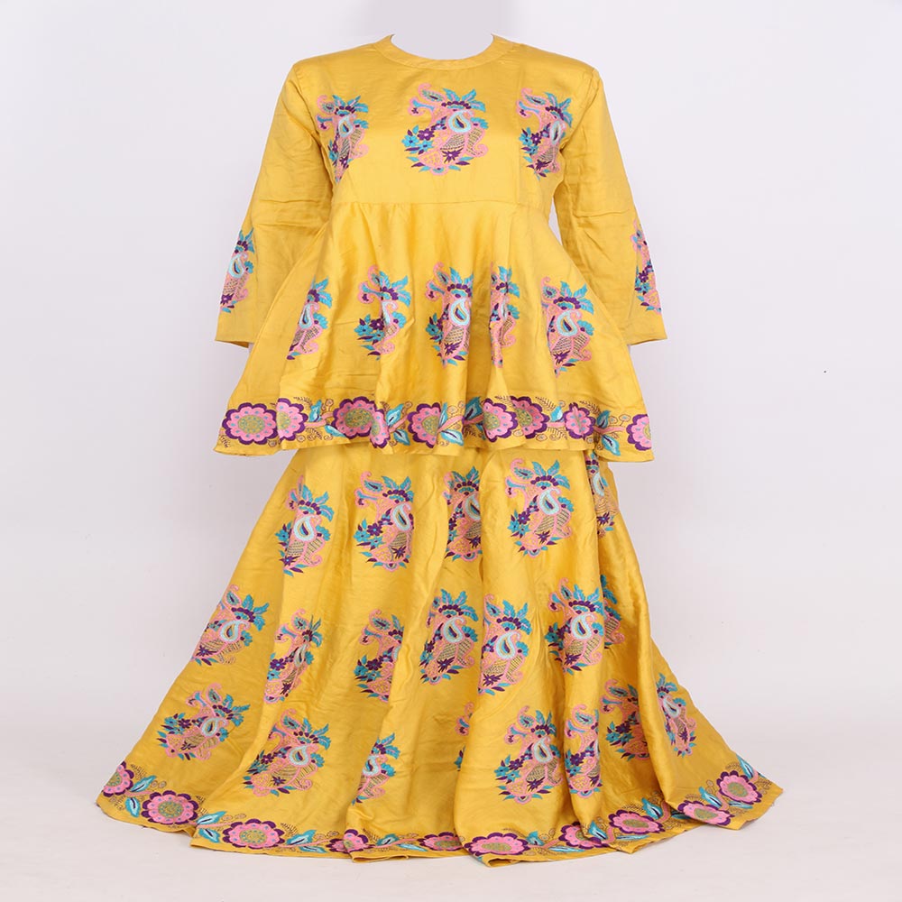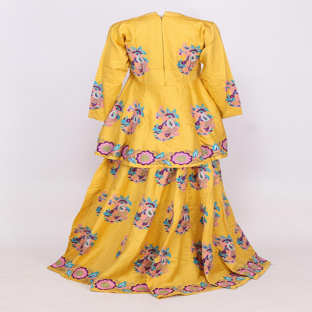 Top & Skrt Is Of Yellow Colour With Multicoloured Thread Embroidery.