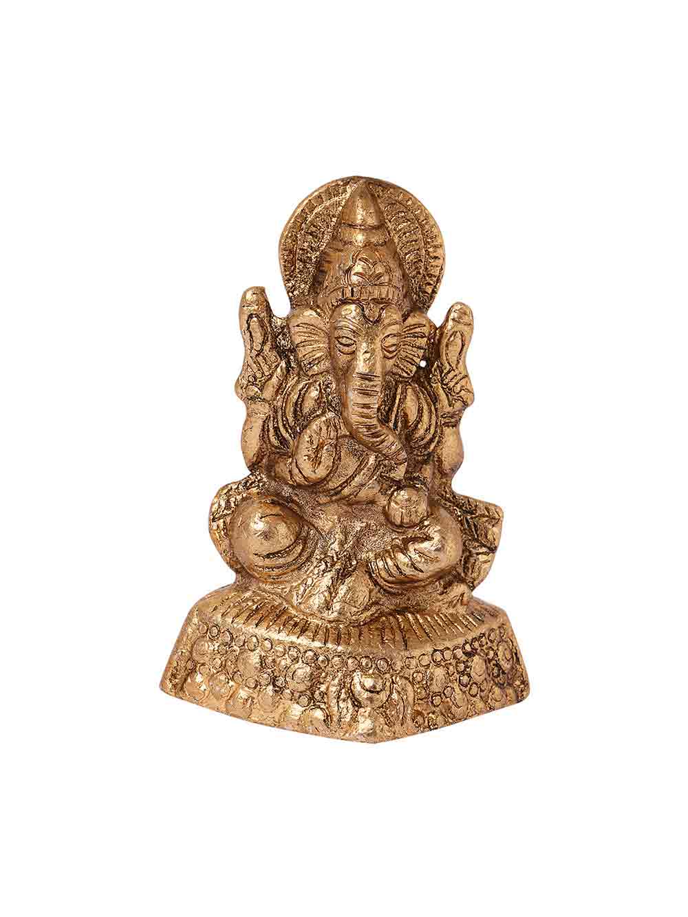 Ganesha, an all-encompassing deity, is the God of all beginnings. He is believed to help you through hard situations and answer your prayers for success. This bronze polished statue of Ganesha made of aluminum is sure to bring good luck, prosperity and wisdom in your life. Also, you can let your loved ones know you really care for them by gifting this aesthetic peice of art to them. It will look gorgeous wherever put and will enhance the décor of your house.