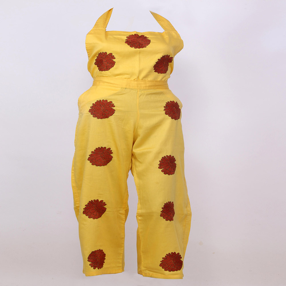 Dress Is Made In Yellow Colour With Design Done With Contrast Brown Thread