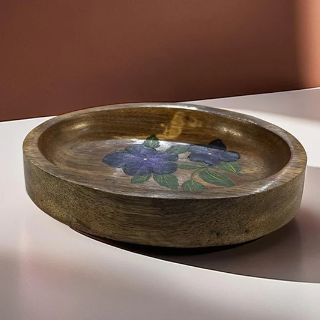 Color: Brown & Dark blue | Dimension: 16x12x2.5 cm | Material: Mango Wood