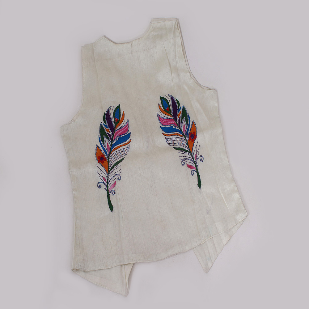 Colour Of Waistcoat Is Offwhite With Multi Coloured Thread Embroidery