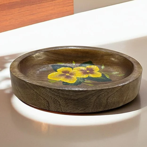 Color: Brown & Yellow | Dimension: 16x12x2.5 cm | Material: Mango Wood