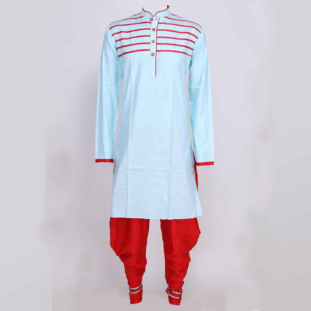 Kurta Made Of Blue Cottonsilk With Red Kantha Stich Embroidery