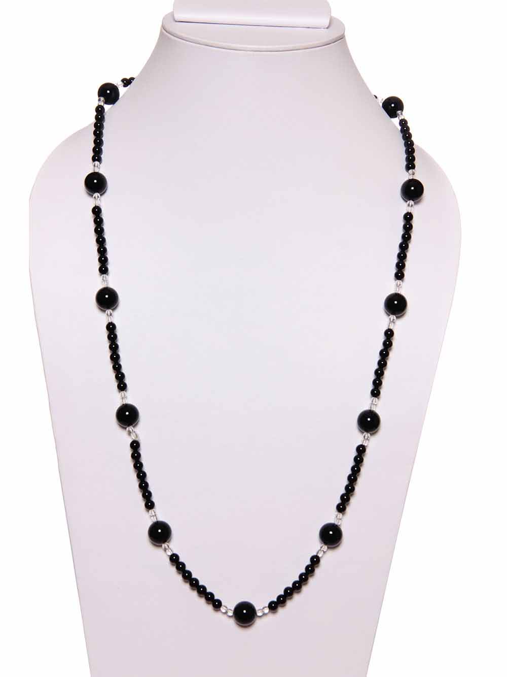 Beautiful & Genuine Onyx And Crystal Necklace. Good Quality Semi Precious Gemstone. It Is A Joyful Stone That Feels Very Secure In Its Essence And Transmits The Same Warmth, Protection And Inner Security To Its Surroundings. Handcrafted Fine Onyx Crystal Semi Precious Gemstone Necklace Is Stunning With The Any Dress. Onyx Gemstone Looks Unique In Style. It Complements Your Outfits. Light Weight Necklace Suited For Any Dress And Age. Shape Of Stone: Plain Round Bead, Size Of Bead: 4mm, 6mm And 14mm, Length: Approx 36″, Weight 84 Grams