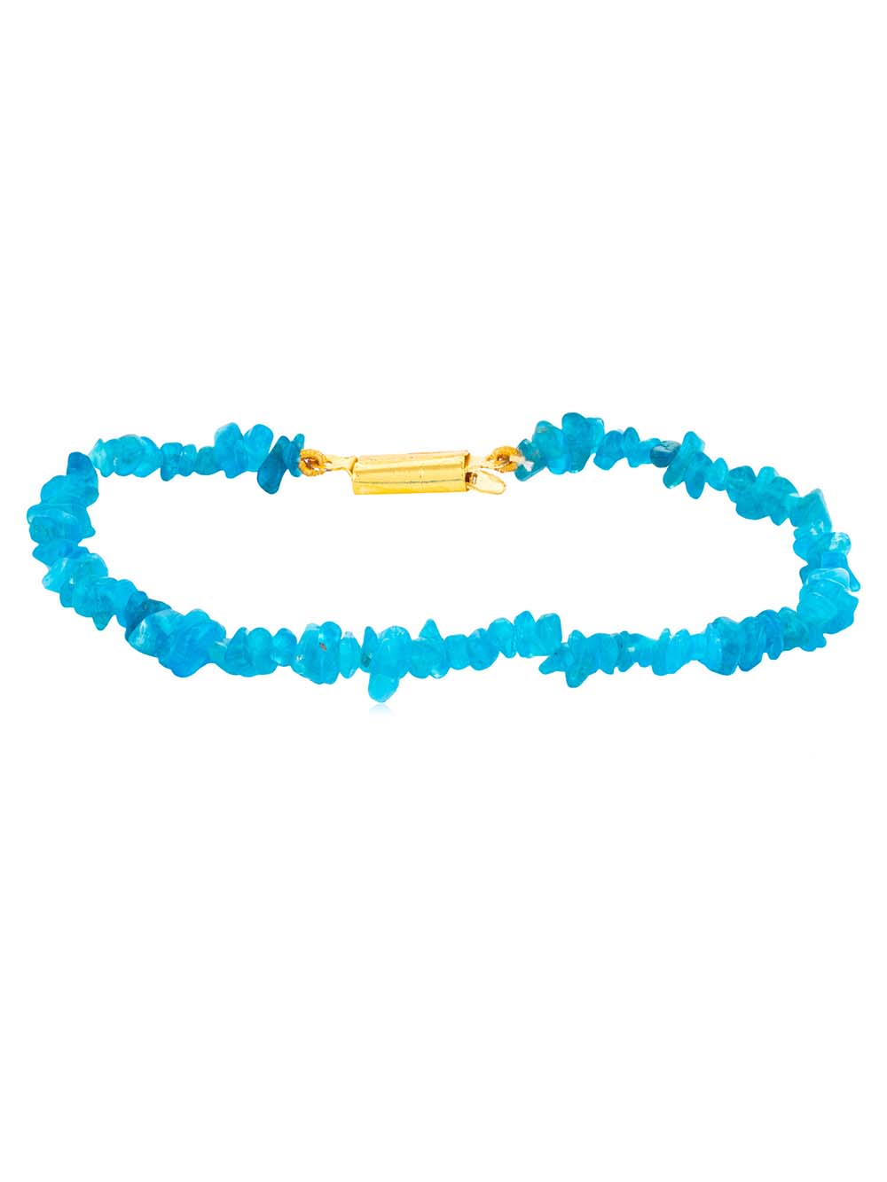 Crystal Campus The Haat Blue Apatite hand made Chips Bracelet opens the throat chakra. It enhances communication in groups and facilitates public speaking.