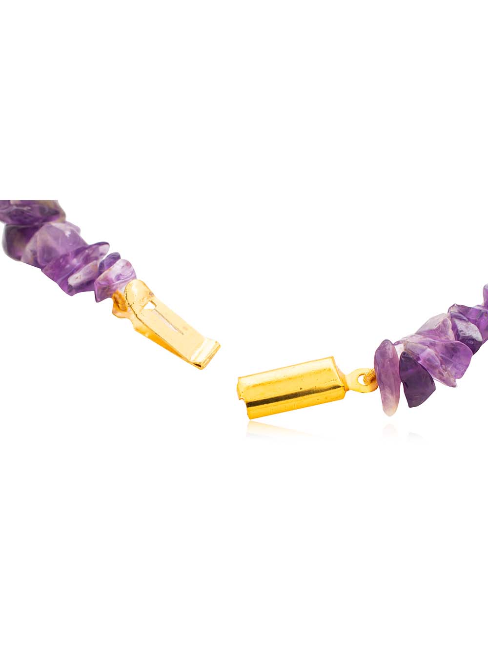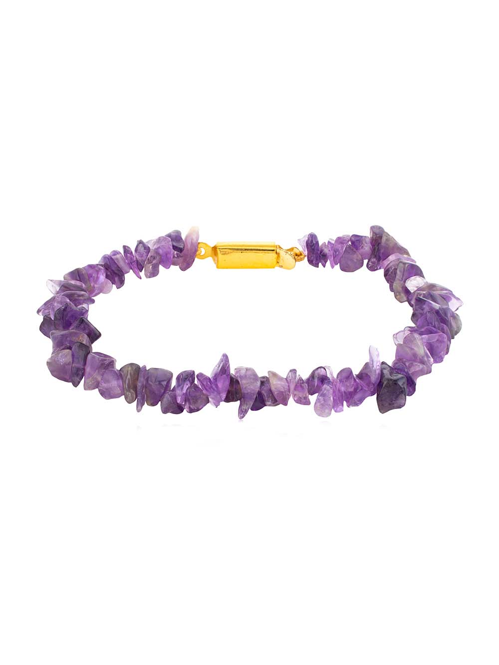 Crystal Campus The Haat Amethyst hand made Chips Bracelet In the spiritual world, Amethyst provided a connection to the Divine. Amethyst’s ability to expand the higher mind also enhances one’s creativity and passion. It strengthens the imagination and intuition, and refines the thinking processes. It helps in the assimilation of new ideas. Amethyst protects against psychic attack, paranormal harm or ill-wishing, and returns the energy back to the universe after being transformed into positive, loving energy. To increase this power and attract good luck. Amethyst is a meditative and calming stone which works in the emotional, spiritual, and physical planes to promote calm, balance, and peace. Amethyst is a powerful and protective stone. It guards against psychic attack, transmuting the energy into love and protecting the wearer from all types of harm, including geopathic or electromagnetic stress and ill wishes from others. Amethyst is a natural tranquiliser, it relieves stress and strain, soothes irritability, balances mood swings, dispels anger, rage, fear and anxiety. Alleviates sadness and grief, and dissolves negativity. Amethyst activates spiritual awareness, opens intuition and enhances psychic abilities. It has strong healing and cleansing powers. It calms and stimulates the mind, helping you become more focused, enhancing memory and improving motivation. Amethyst assists in remembering and understanding dreams. It relieves insomnia. Encourages selflessness and spiritual wisdom. Amethyst boosts hormone production, tunes the endocrine system and metabolism. It strengthens the immune system, reduces pain and strengthens the body. Relieves physical, emotional and psychological pain or stress. Amethyst eases headaches and releases tension.