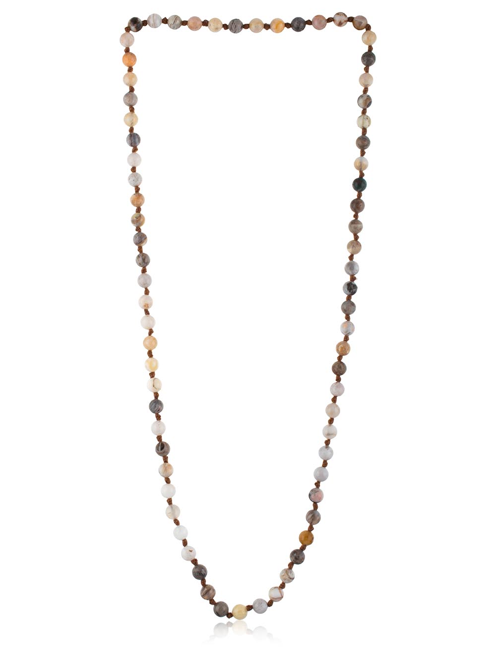 “Crystal Campus Bamboo Leaf Agate 32” hand made round bead knotted mala is used to enhance creativity, memory, and focus. It is also an excellent stone to use as a stress reliever while simultaneously increasing one’s courage. Agate encourages a sense of reality and pragmatic thinking. Agates with regular designs soothe those who desire peace and harmony, while those with irregular designs can stimulate action and important decision making. Bamboo Leaf Agate is a stone of creativity. It balances yin & yang, instills harmony, increases intellect, memory, energy, strength & longevity. It is a good stress reliever & increases courage & self confidence.