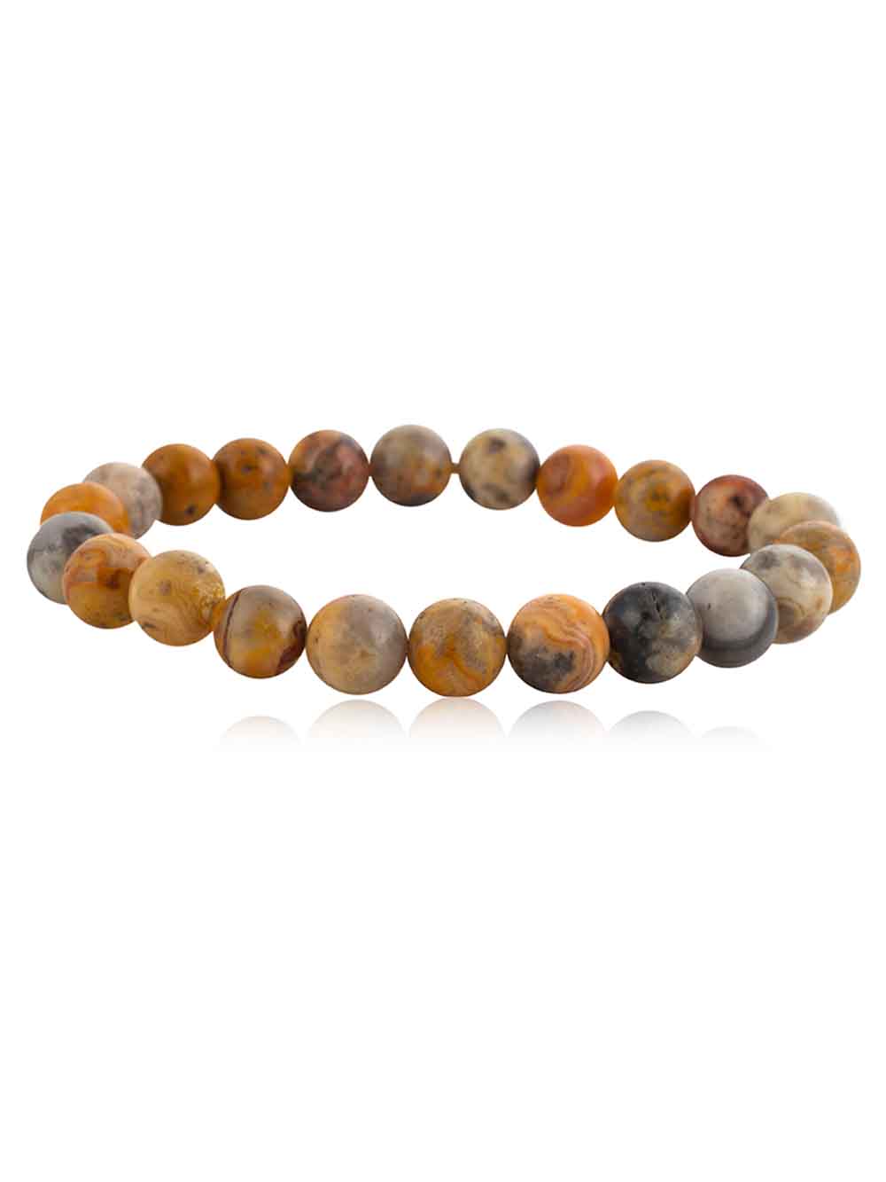 “Crystal Campus Crazy Lace Agate hand made stretchable round bead bracelet Its energies are strong, yet soothing and energizing. It vibrates at a lower frequency compared to other gemstones, which means it can bring your own energy to a more grounded and attuned frequency.