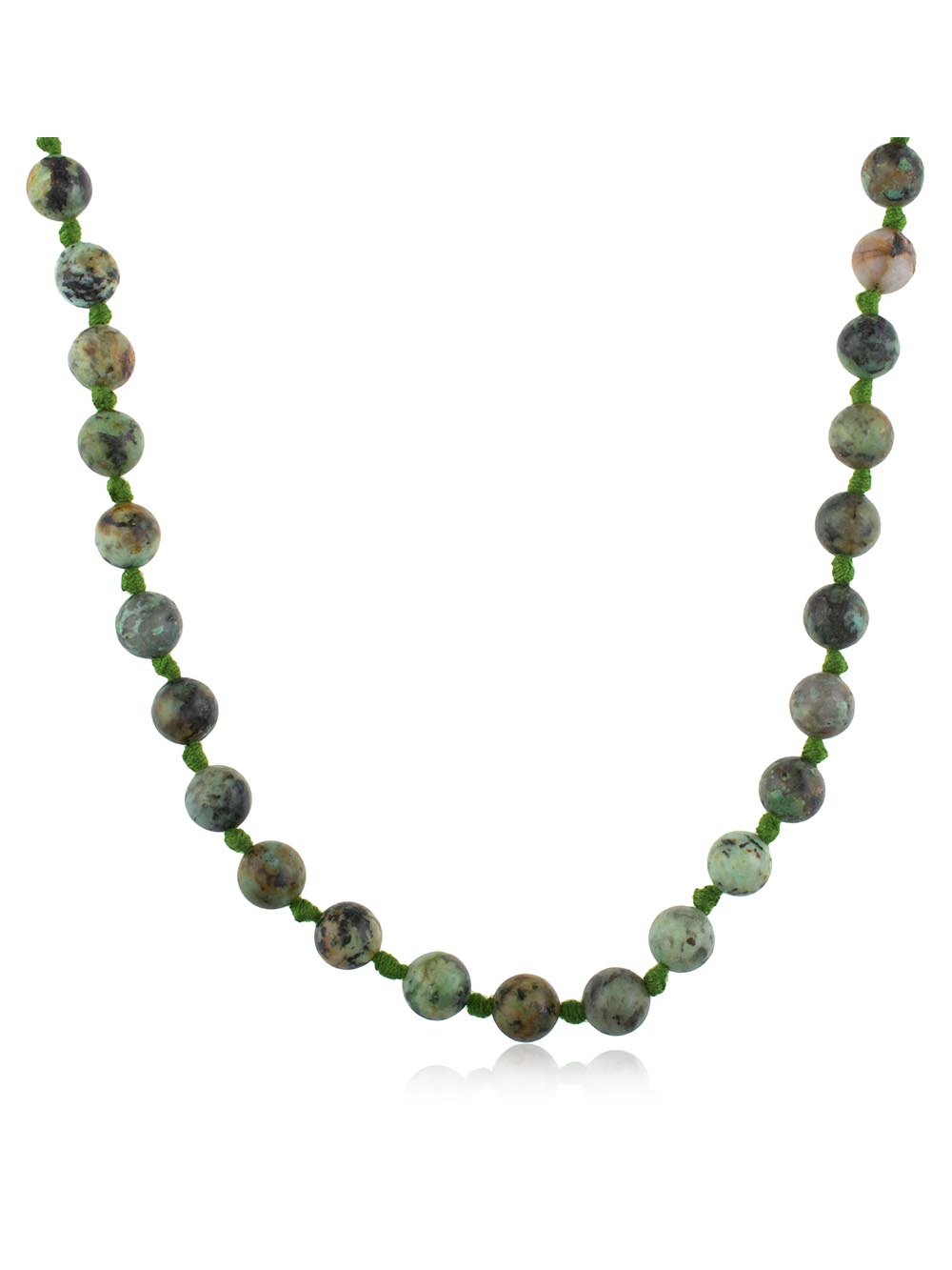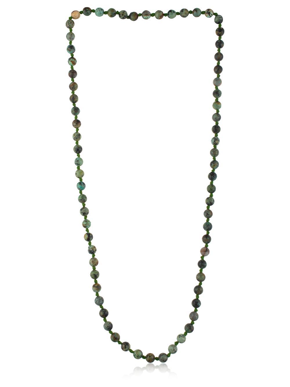 Crystal Campus African Turquoise 32” hand made round bead knotted Mala is the “Stone of Evolution.” It encourages growth and development to foster positive change from within. It opens the mind to new ideas and endless possibilities.