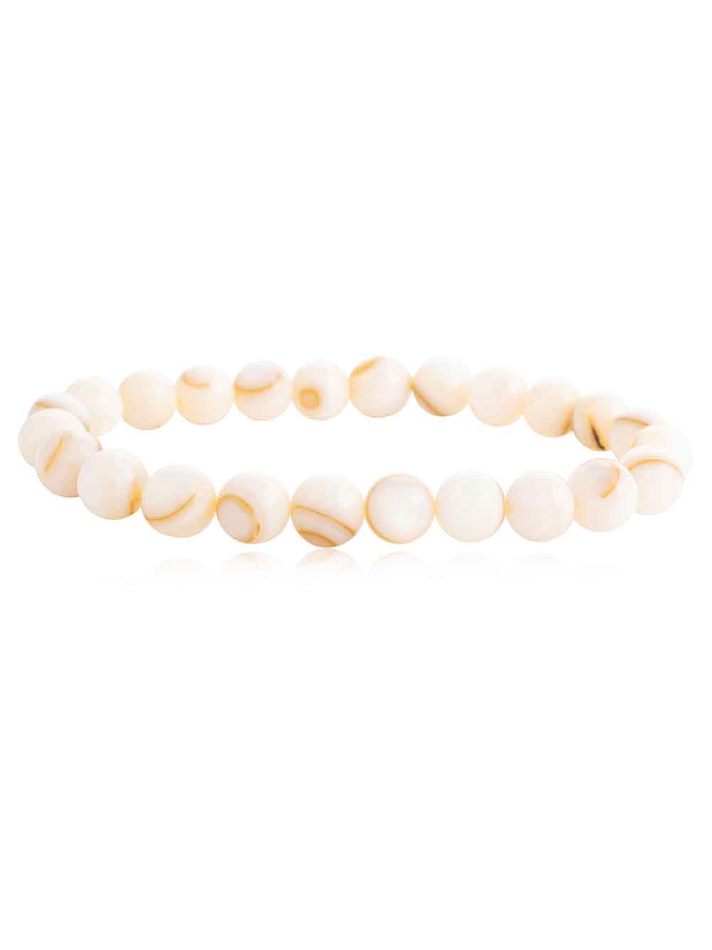 “Crystal Campus Mother Of Pearl hand made stretchable round bead bracelet is a protection stone, Mother of Pearl brings the gentle healing power of the sea. It is a stress relieving stone; relaxing, soothing and calming to the emotions.
