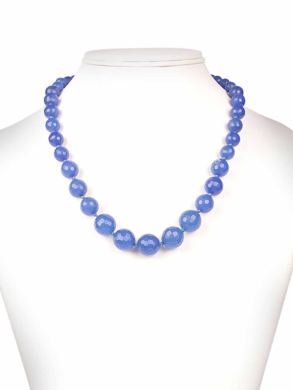 Handcrafted Fine Elegant Blue Onyx Crystal Semi Precious Gemstone Necklace is stunning with the any dress. Onyx Gemstone looks unique in style. It complements your outfits. Light weight Neclklace suited for any dress and age. Neckpiece made using small as well as big semi-precious stones of a single shade. Size of Bead: 8mm- 14mm, Length: Approx 18″, Shape of Stone: Faceted round bead.