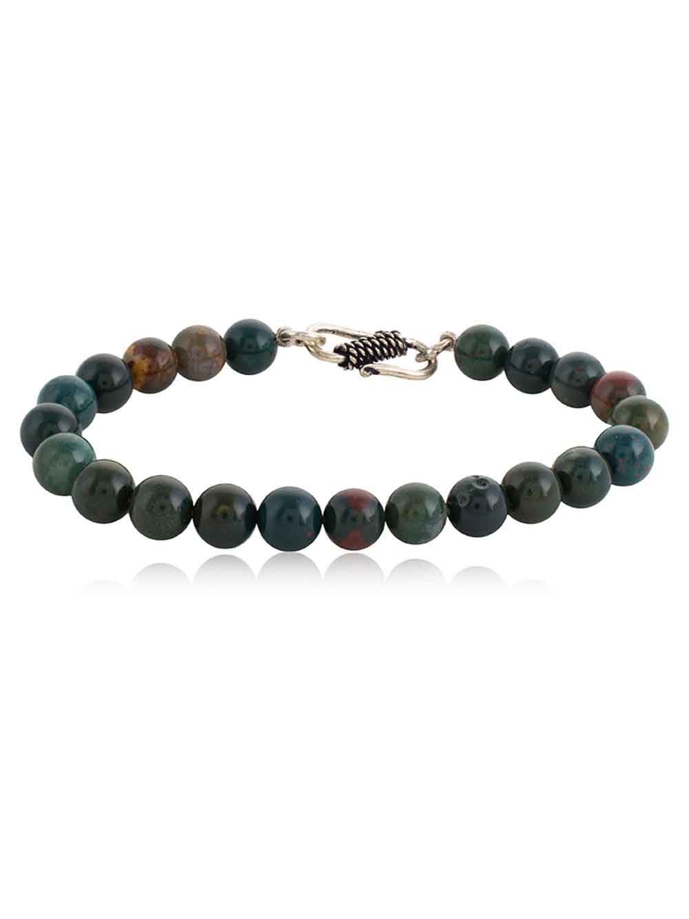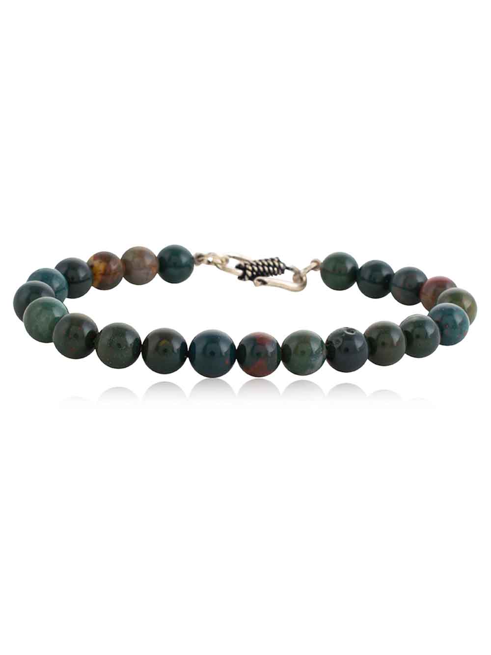 Crystal CampusBloodstone hand made round bead bracelet is an excellent blood cleanser and a powerful healing stone.  It heightens intuition and increases creativity.  It is grounding and protecting.  Bloodstone draws off negative environmental energy, helping to overcome influences such as geopathic or electromagnetic stress.  It stimulates dreaming and is a powerful revitaliser.  Gives courage and teaches you how to avoid dangerous situations.  Bloodstone encourages selflessness and idealism.  Assists in acting in the present moment.  Bloodstone calms and revitalises the mind, dispels confusion and enhances decision-making.  Assists in adjusting to unaccustomed circumstances.  Reduces irritability, aggressiveness and impatience.