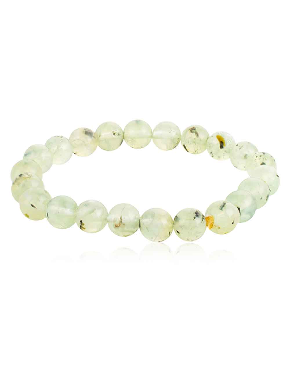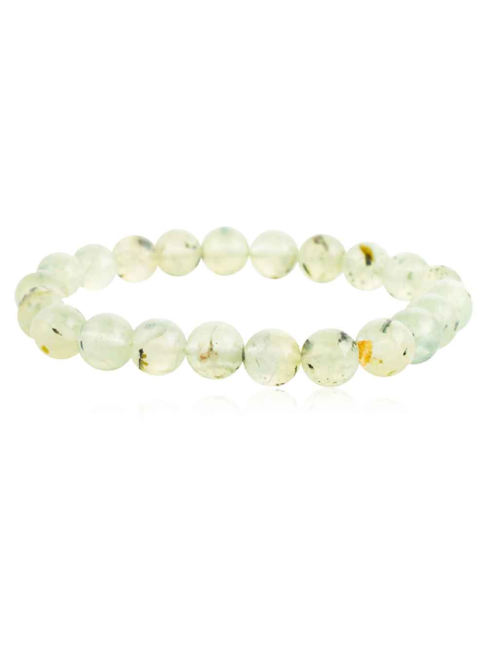 “Crystal Campus Prehnite hand made stretchable round bead bracelet is considered a stone of unconditional love and the crystal to heal the healer. It enhances precognition and inner knowing. Enables you always to be prepared.