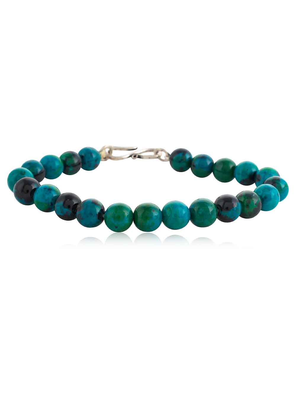 “Crystal CampusChrysocollahand made round bead bracelet calms, cleanses and re-energises all the chakras. It draws out guilt, heals heartache and increases the capacity to love. Improves communication and opens psychic vision. Encourages self-awareness and inner balance. Imparts confidence and sensitivity. Chrysocolla enhances personal power and inspires creativity. Overcomes phobias by drawing out negativity and supplying motivation. Reduces mental tension. Promotes truth-telling and impartiality. Alleviates guilt and brings in joy.
