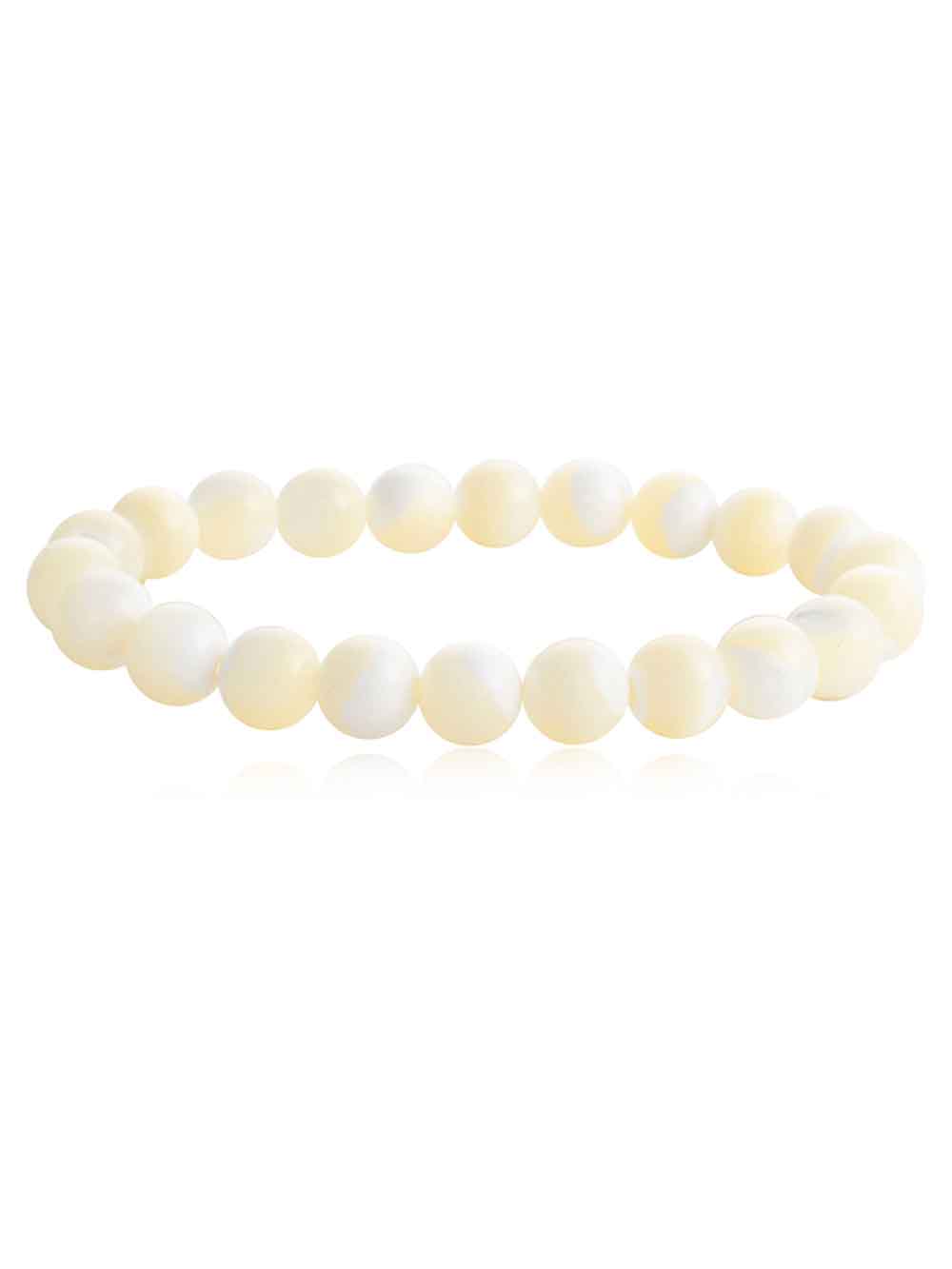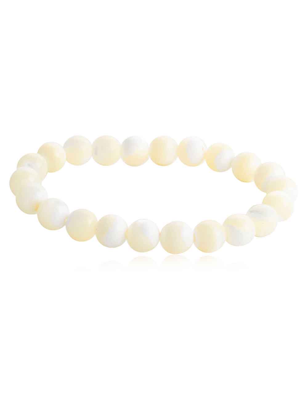 “Crystal Campus Mother Of Pearl hand made stretchable round bead bracelet is a protection stone, Mother of Pearl brings the gentle healing power of the sea. It is a stress relieving stone; relaxing, soothing and calming to the emotions.