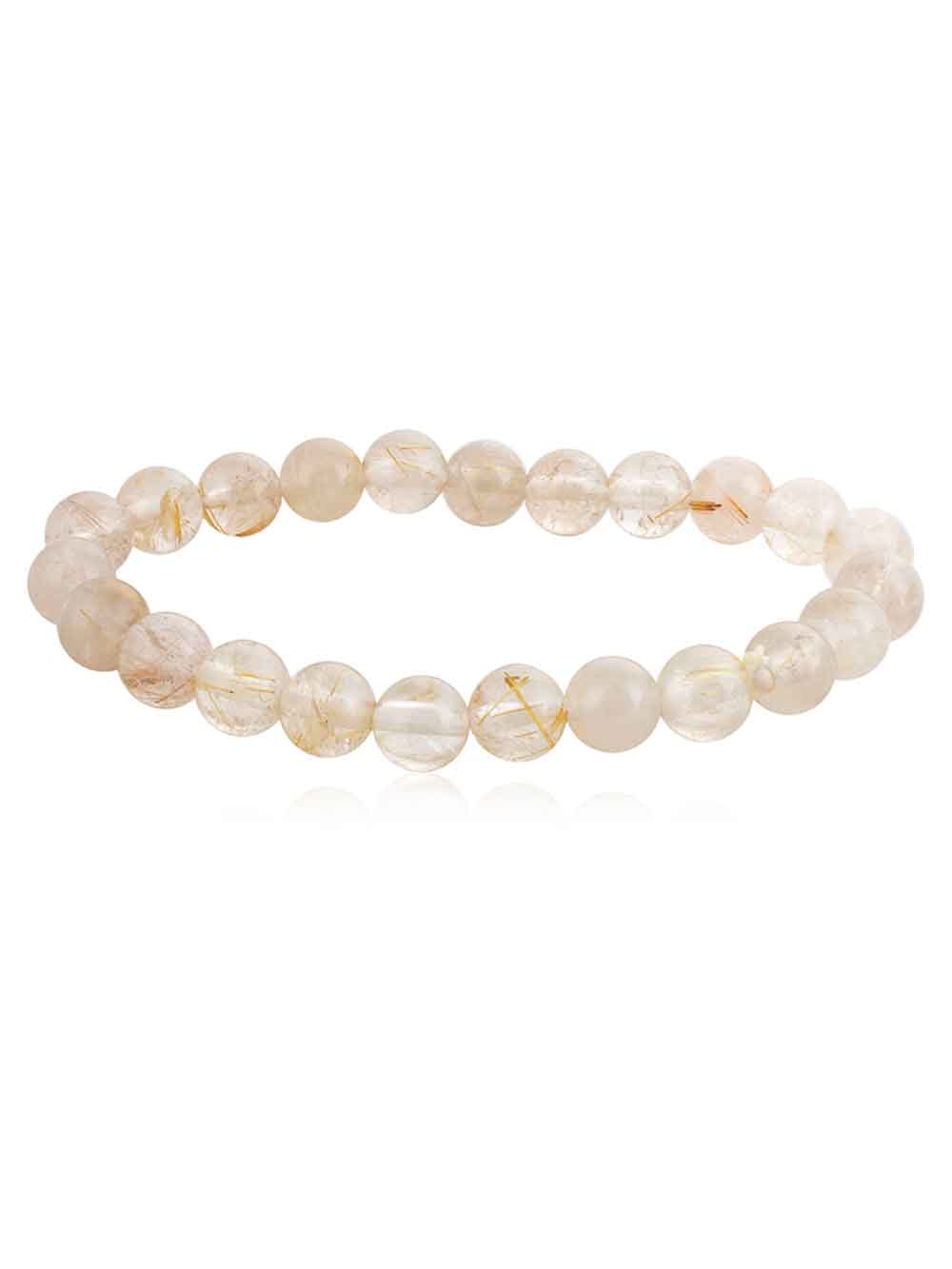 “Crystal Campus Rutilated Quartz hand made stretchable round bead bracelet is an illuminator for the soul, promoting spiritual growth. It cleanses and energises the aura. Draws off negative energy and disease, letting go of the past.