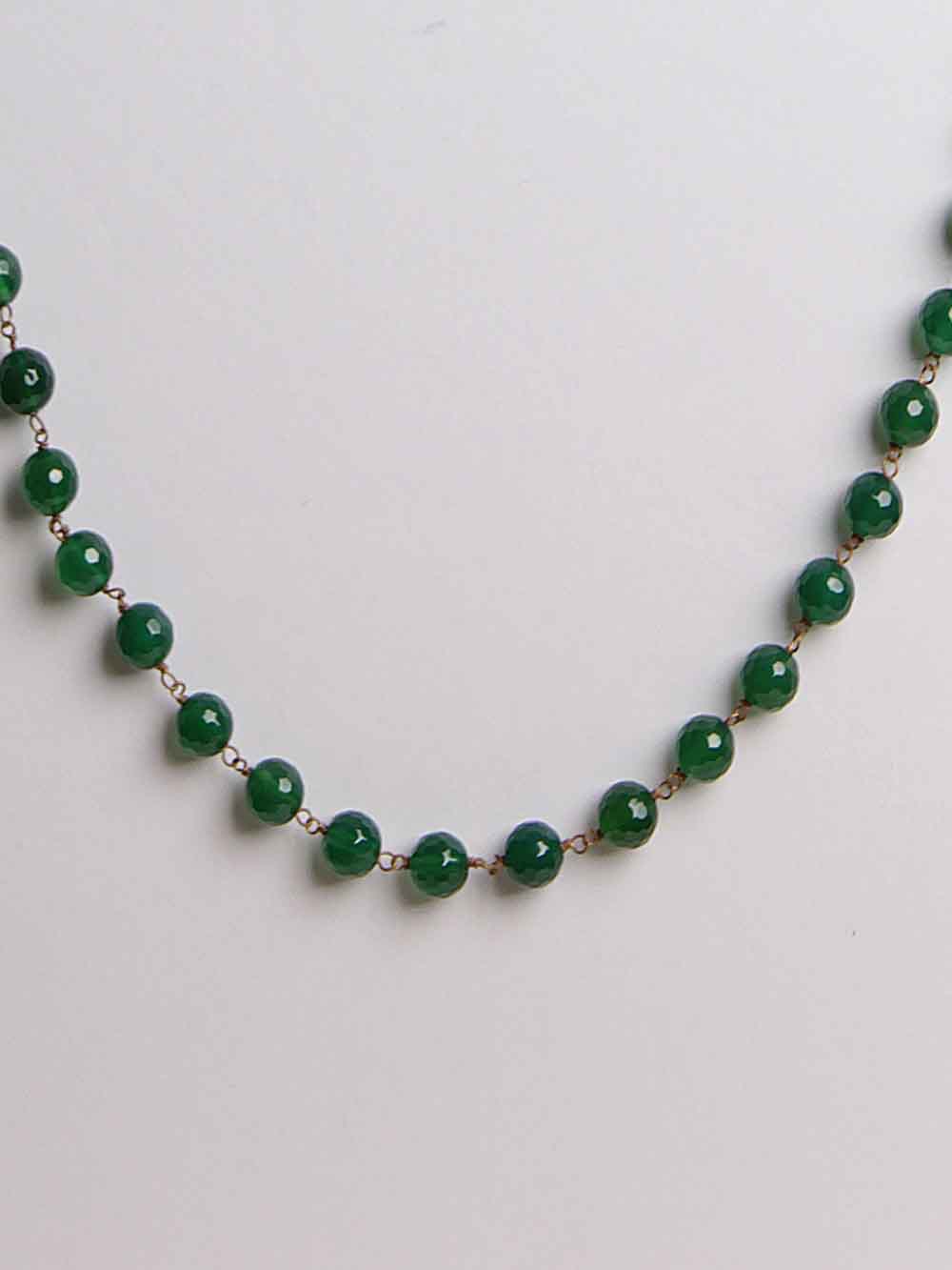 Crystal Campus Semi Precious Green Onyx Reiki Crystal Chakra Healing Gemstone Necklace for Power and Protection. Beautiful & Genuine green Onyx Necklace. Good Quality Semi Precious Gemstone. It Is A Joyful Stone That Feels Very Secure In Its Essence And Transmits The Same Warmth, Protection And Inner Security To Its Surroundings. Handcrafted Fine Green Onyx Crystal Semi Precious Gemstone Necklace Is Stunning With The Any Dress. Onyx Gemstone Looks Unique In Style. It Complements Your Outfits. Light Weight Necklace Suited For Any Dress And Age. Shape Of Stone: Faceted Round bead with golden color wire linkage, Size Of Bead: 8 mm, Length: Approx 36″, Weight 56 Grams