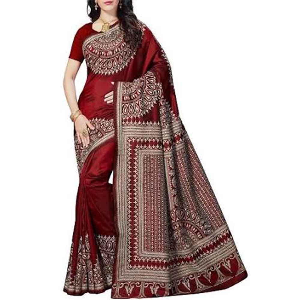 Fine Quality Maroon Bangalore Silk Withwhite Kantha