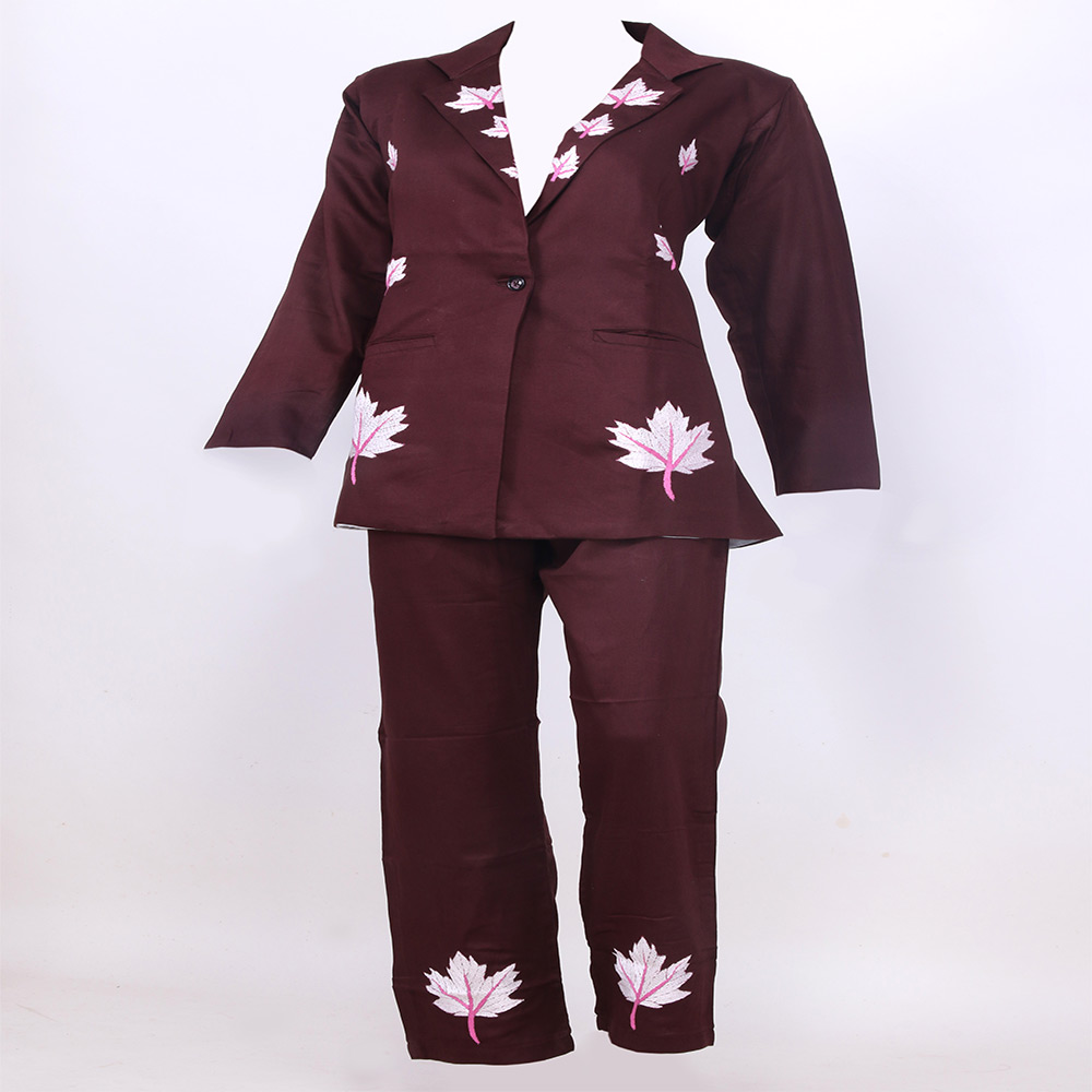 Pantsuit Is Of Deep Brown Colour With Multicolour Thread Embroidery