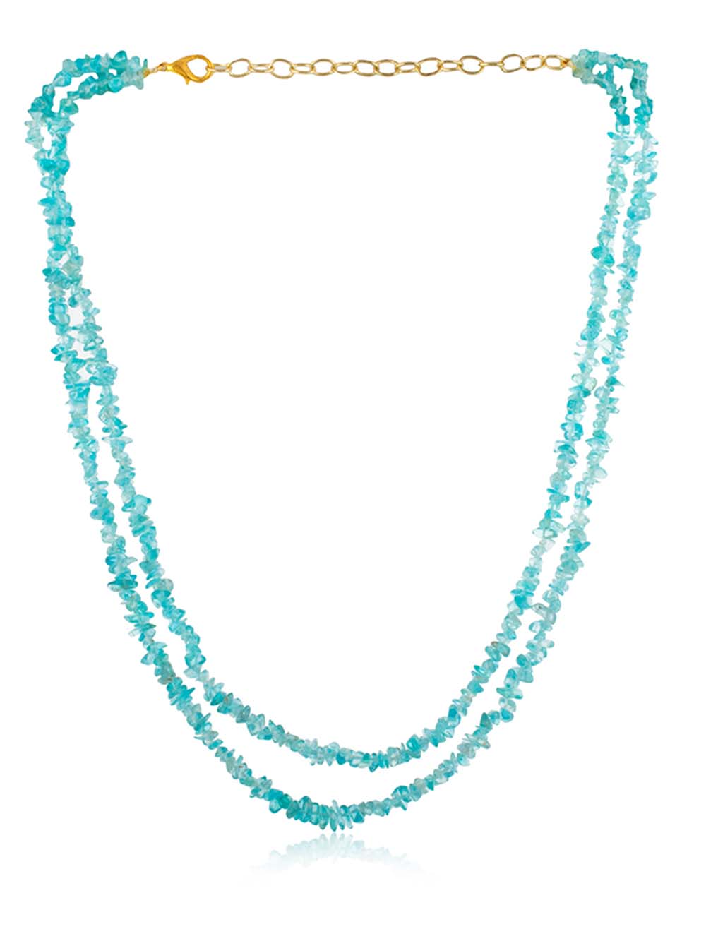 “Crystal Campus Apatite 2 line hand made chips Necklace is a stone of manifestation. It is related to service and to humanitarian pursuits. Apatite is attuned to the future, yet connects to past lives. It stimulates the development of our psychic gifts and spiritual attunement, deepening meditation and aiding communication and self-expression on all levels. It balances the physical, emotional, mental and spiritual bodies, and the chakras, eliminating overactivity and stimulating underactivity.