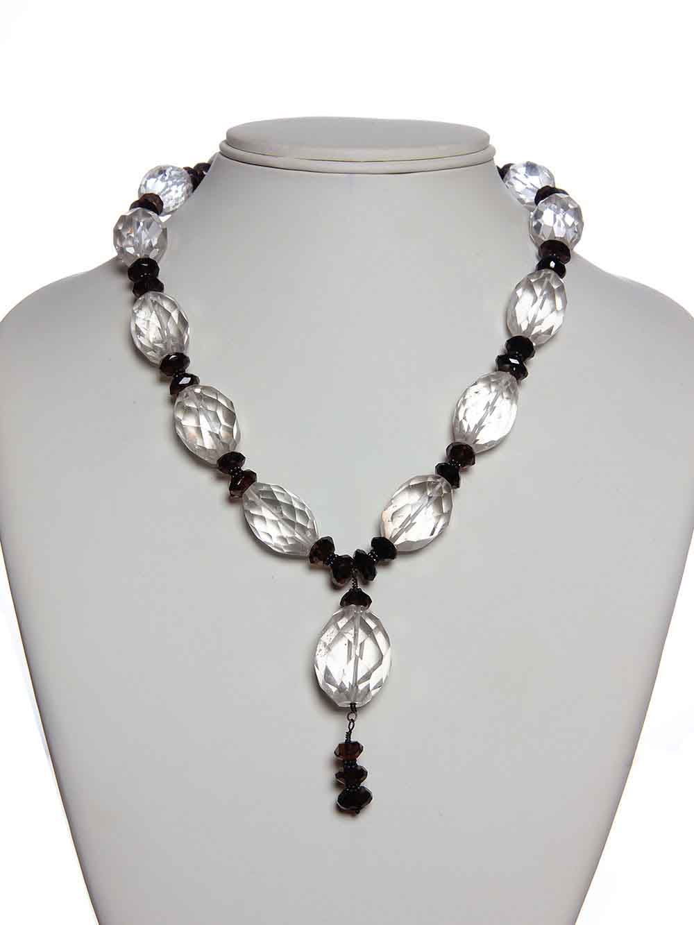 Natural Crystal Quartz And Smoky Quartz Semi Precious Stones Necklace