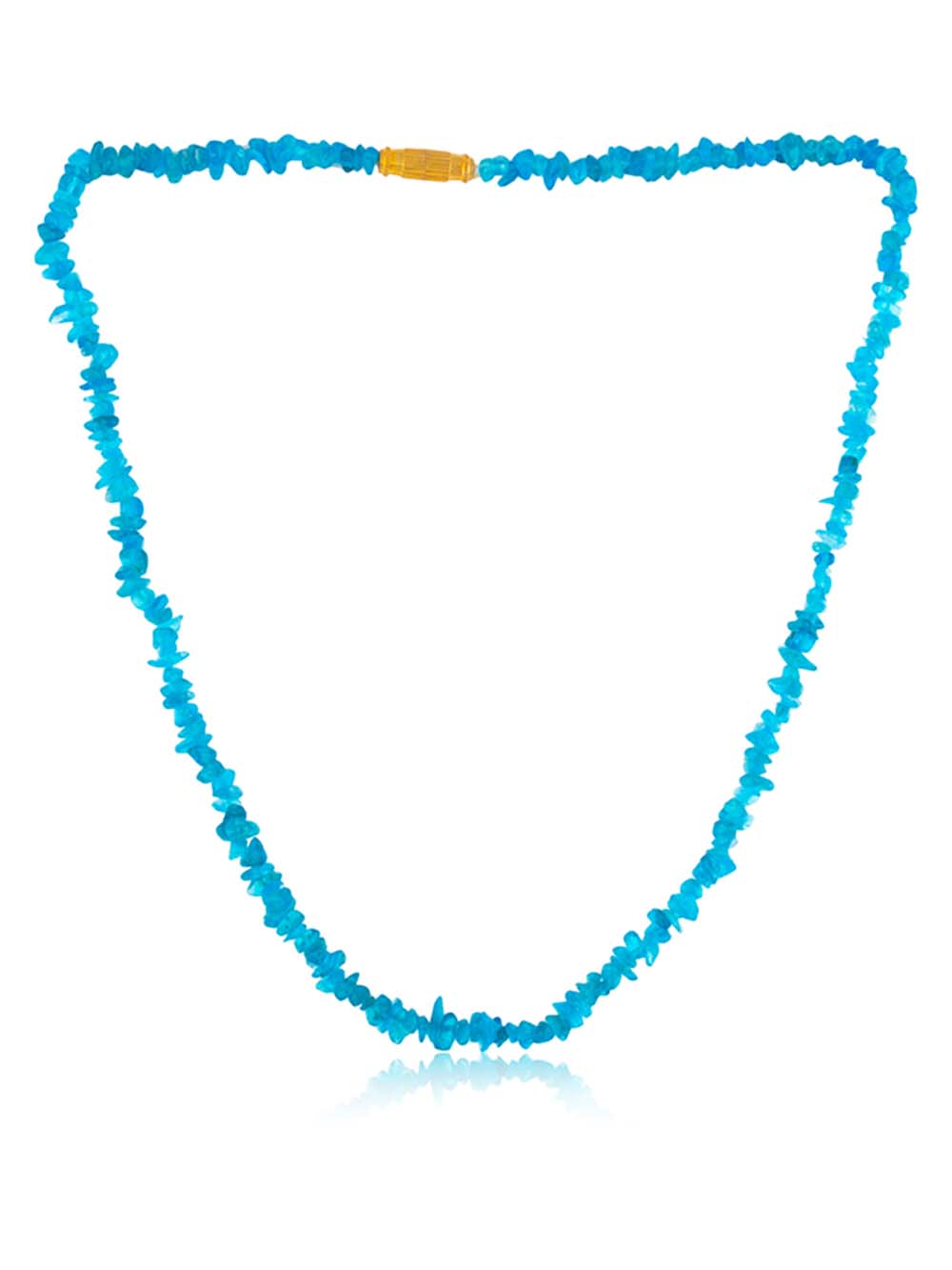 “Crystal Campus Blue Apatite hand made Chips Necklace opens the throat chakra. It enhances communication in groups and facilitates public speaking. It heals the heart and emotions. Blue Apatite connects to a very high level of spiritual guidance.