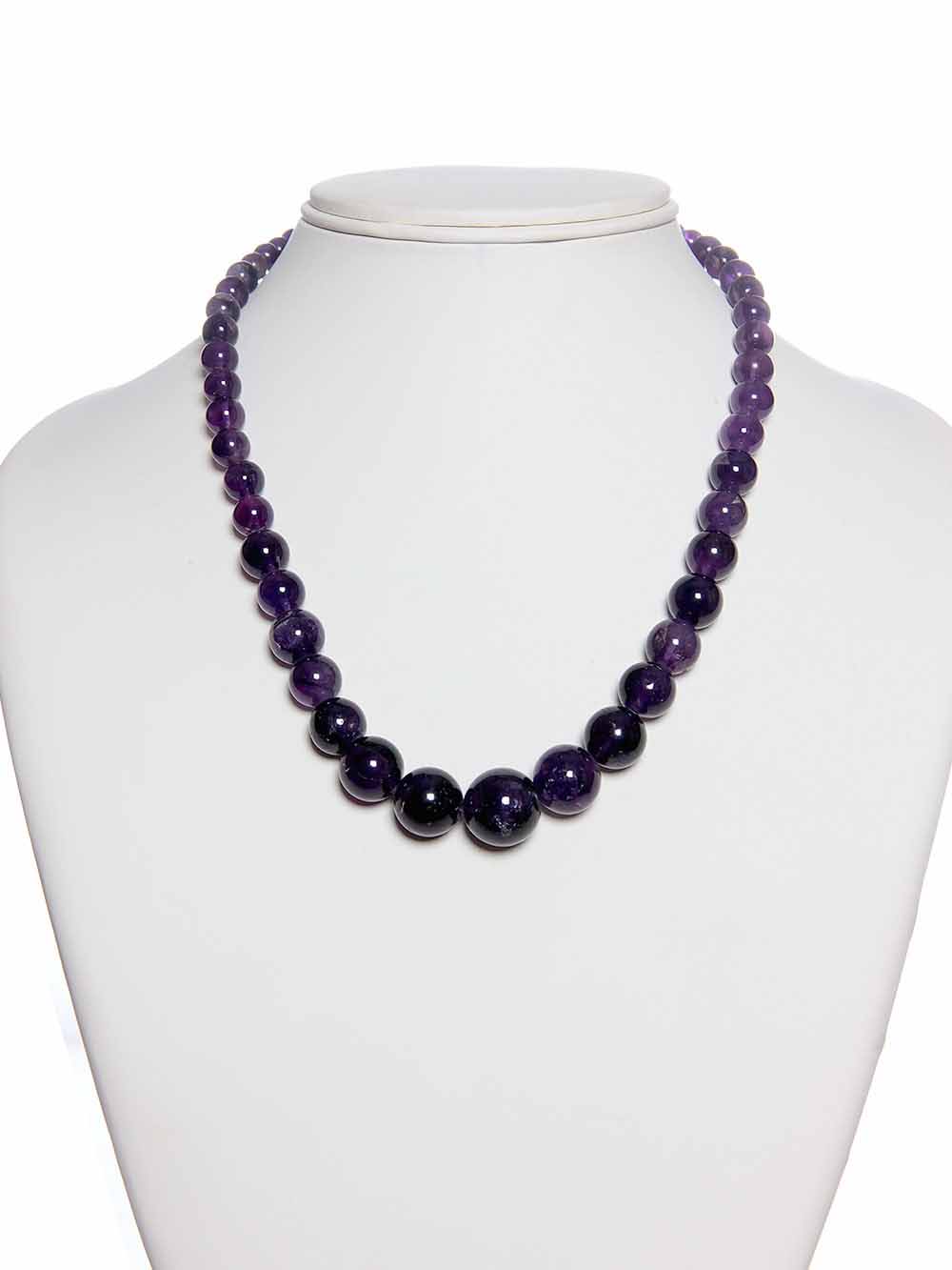 A wonderful necklace of crystal base made up of amethyst semi precious gemstone, weighing 63 g is what the only thing your attire would need to be complete. With its unique style of Plain round bead in graduation necklace will definitely make you feel complacent due to the honor you deserve. Length: Approx 18″