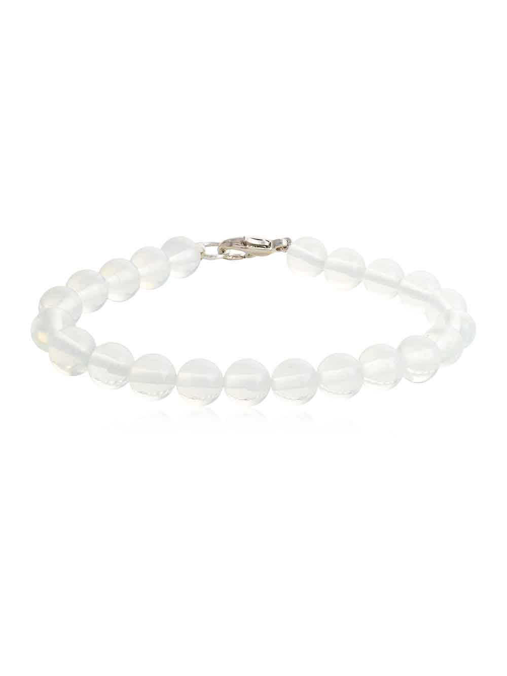 Crystal Campus Opalite hand made round bead bracelet is subtle yet highly energetic. It is ideal for meditation. Opalite improves communication on all levels, especially the spiritual.