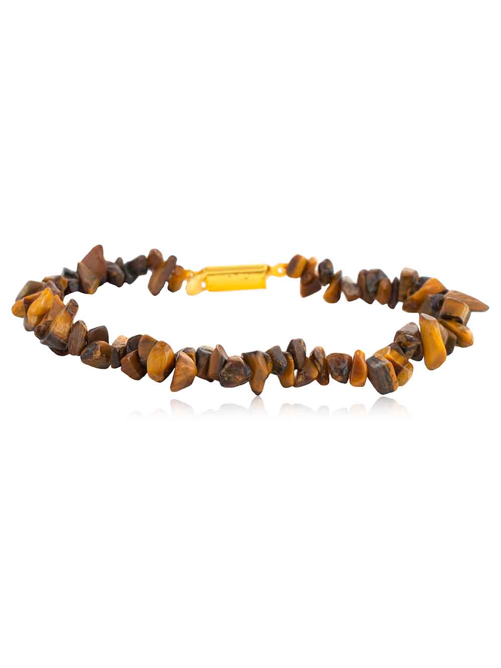 Crystal Campus Tiger Eye’s hand made Chips Bracelet is a stone of protection, Tiger Eye may also bring good luck to the wearer. It has the power to focus the mind, promoting mental clarity, assisting us to resolve problems objectively and unclouded by emotions.