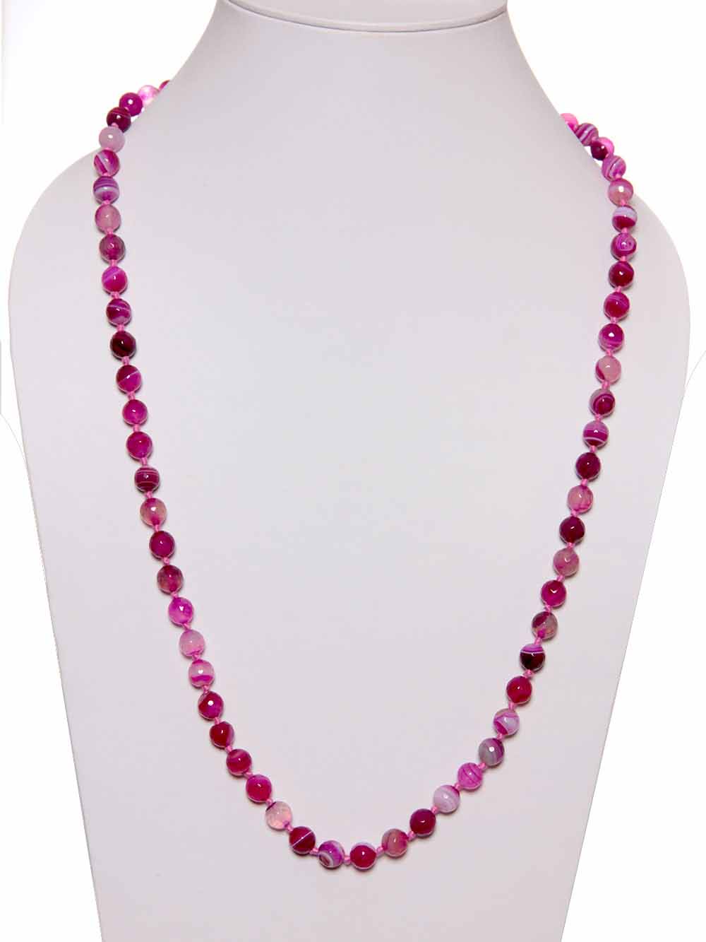 Beautiful & Genuine Onyx necklace. Good Quality Semi Precious Gemstone. It is a joyful stone that feels very secure in its essence and transmits the same warmth, protection and inner security to its surroundings. Handcrafted Fine Onyx Crystal Semi Precious Gemstone Necklace is stunning with the any dress. Onyx Gemstone looks unique in style. It complements your outfits. Light weight Necklace suited for any dress and age. Faceted round bead in knotted Necklace. Size of Bead: 10mm, Length: Approx 36″