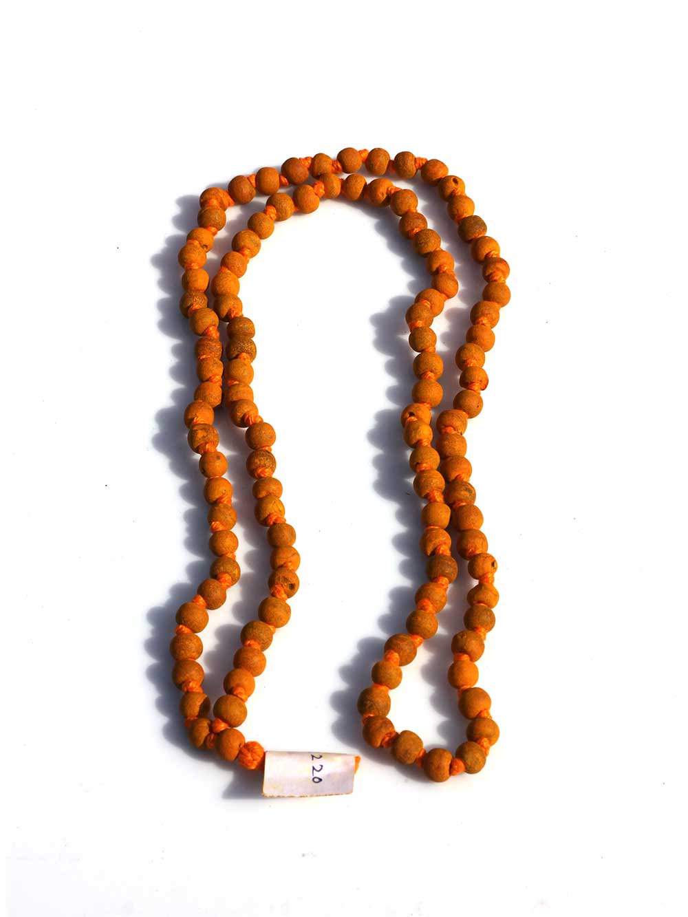 Turmeric Rosary or Haldi Mala is used to perform Anusthan (special prayers) and destroy enemies and succeed in law suits. It made of bulbs of Turmeric which is considered one of the most purifying herbs. It is used for recitation of Mantras during those worshiping ceremonies which are performed to bring success when you are in trouble because of some enemy. This Mala is specially used for chanting Mantras of Bagalamukhi and Jupiter. Haldi Mala can be used to attain victory over your enemies, the resolution of a litigation, and success in quarrels and competitions. Turmeric is considered one of the most purifying herbs in Ayurveda and is associated with fertility. One who wears this mala attains peace of mind and gets rid of anxiety, depression and tensions. The person also acquires a good amount of spiritual powers. Weight 35.53 grams.