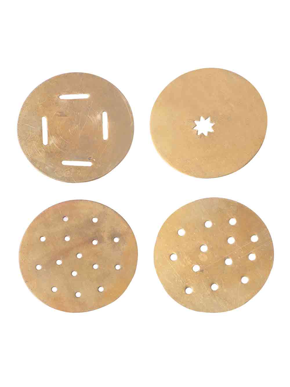 “Naveen Creative presents Sev Chakli Sevaiya Gathiya maker Sancha Machine Made from premium grade Brass material,with 6 Jaliis (Discs) for Makes Sev Chakli Sevaiya Gathiya etc. Heavy dutty make and easy to clean. Specifications: Product Dimensions: Legnth 6cm, Height 12cm, Width 6cm. Weight: 320 gm approx.”