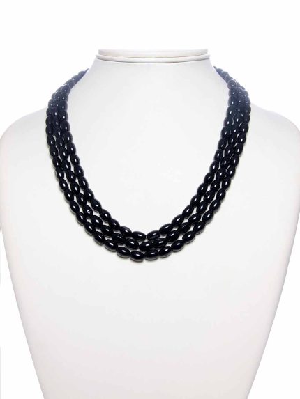 Genuine Healing Crystal Black Onyx Semi Precious Stone 3 Line Necklace